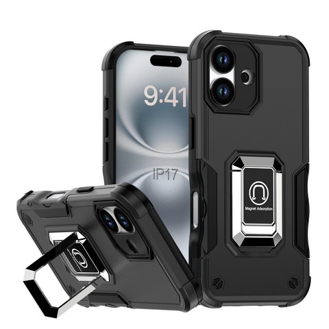 iPhone 17 2025 Hybrid Shockproof Magnetic Ring Stand case Black(Premium Package)