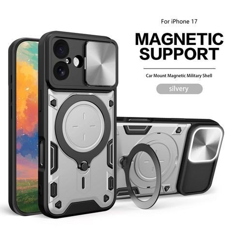 iPhone 17 2025 Heavy Duty Magnet Ring Stand w/ Sliding Camera Cover(Premium Package)