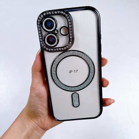 iPhone 17 2025 Glitter case w/Magnetic Ring Black(Premium Package)