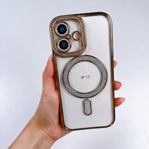 iPhone 17 2025 Chrom Clear Case w/Magnetic Ring Camera Glass Gold(Premium Package)