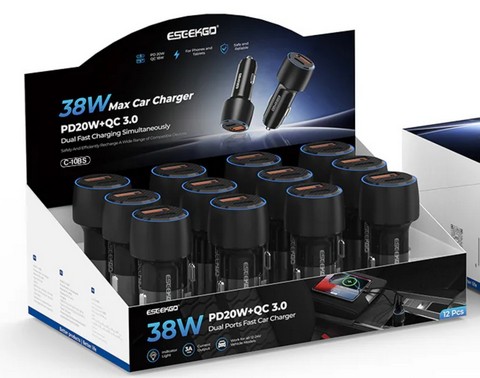 ESEEKGO C-10BS USB+Type-C 38W Dual Ports Car charger 12/box, no individual package