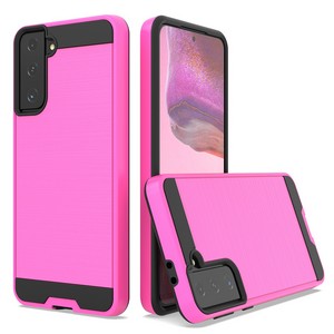 Samsung Galaxy S21 6'3 Hybrid Texture Brushed Metal case, Hot Pink