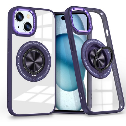 Iphone 12/Iphone 12 pro 6.1 Hybrid Clear Case w/ Magnetic Ring Purple Edge(Premium Package)