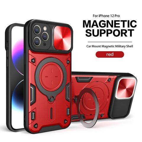 Iphone 12/Iphone 12 pro 6.1 Twisting Magnetic Ring Stand Case w/Camera cover Red(Premium Package)