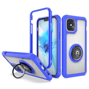 Iphone 12/Iphone 12 pro 6.1 Hybrid Clear Case w/ Magnetic Ring Blue Edge(Premium Package)