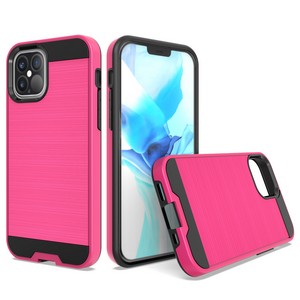 Iphone 12/Iphone 12 pro 6.1 Hybrid Texture Brushed Metal case, Hot Pink