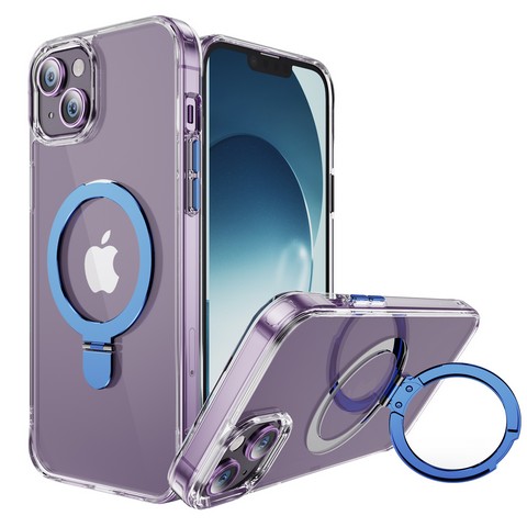 Iphone 15 6.1 Clear Bumper Case w/Magnetic Ring Stand purple