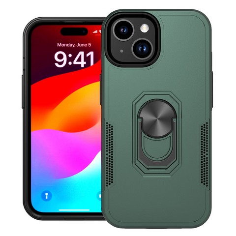 Iphone 15 6.1 Magnetic Ring case w/ Rotate Ring Stand Green