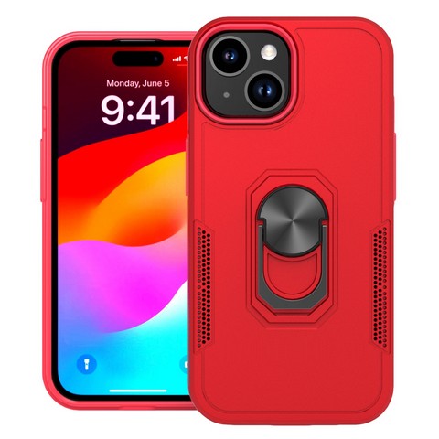 Iphone 15 6.1 Tough Case w/Magnetic Ring Stand Red