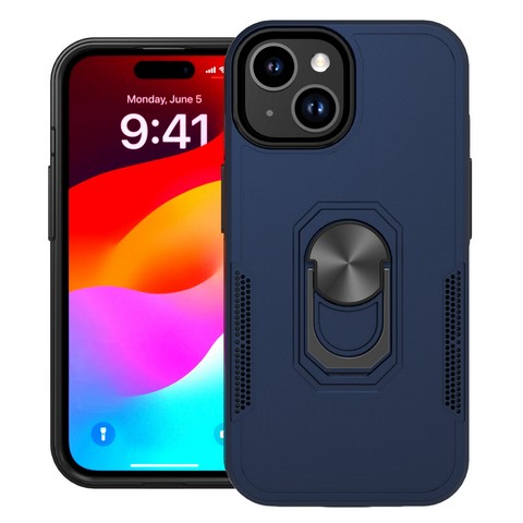 Iphone 15 6.1 Tough Case w/Magnetic Ring Stand Blue