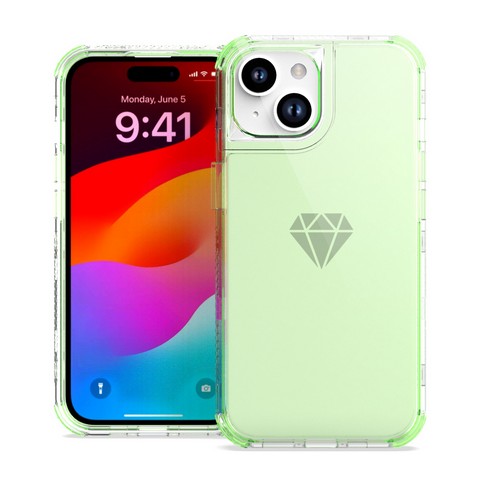 Iphone 15 6.1 Heavy Duty Clear back Shield Case(retail packaged) Green