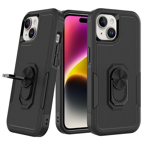 Iphone 15 6.1 Tough Case w/Magnetic Ring Stand Black