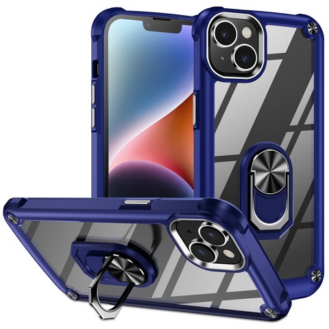 Iphone 15 6.1 Clear Bumper Case w/Magnetic Ring Stand Blue