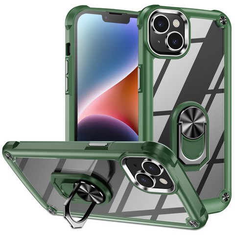 Iphone 15 6.1 Clear Bumper Case w/Magnetic Ring Stand Green