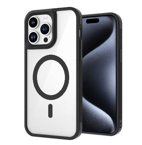 Iphone 15 Pro Max 6.7 Chrom Clear Case w/ Magnetic Ring Black(Retail Packaged)