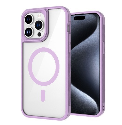 Iphone 15 Pro Max 6.7 Chrom Clear Case w/ Magnetic Ring Purple(Retail Packaged)