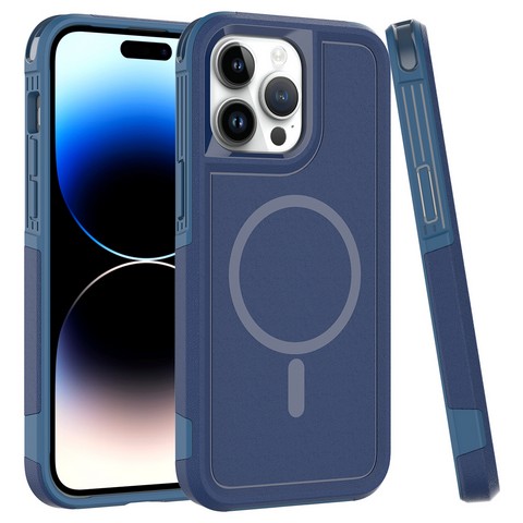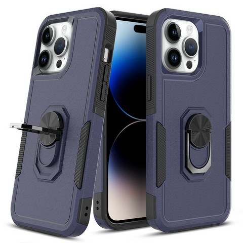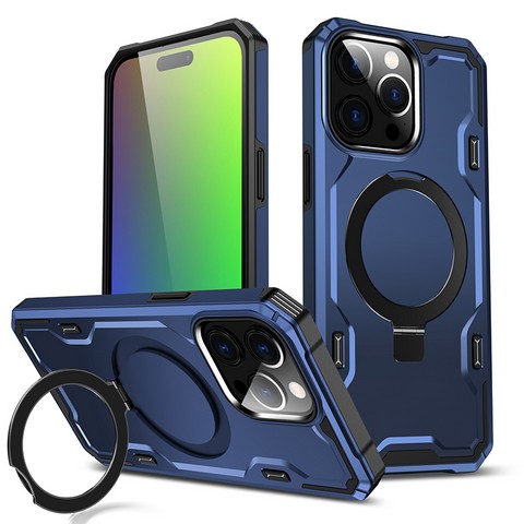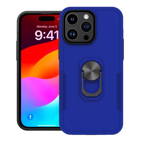 Iphone 15 Pro Max 6.7 Tough Case w/Large Rotating Magnetic Ring Stand Blue(Retail Packaged)