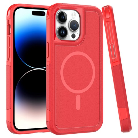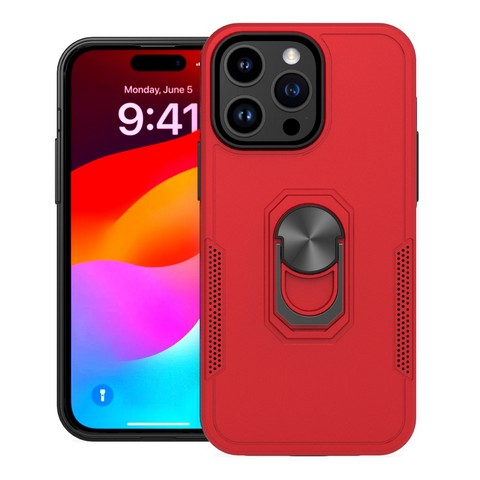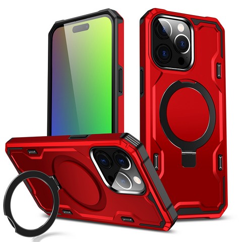 Iphone 15 Pro Max 6.7 Tough Case w/Large Rotating Magnetic Ring Stand Red(Retail Packaged)