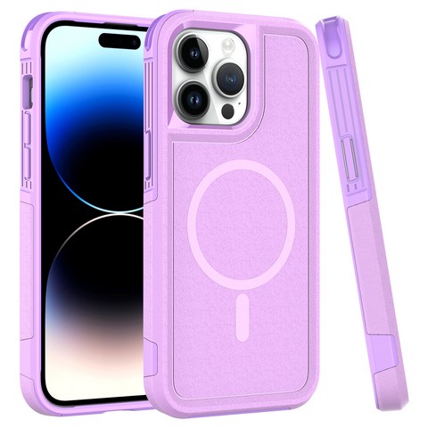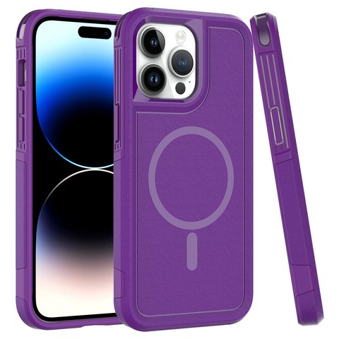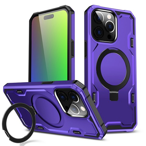 Iphone 15 Pro Max 6.7 Tough Case w/Large Rotating Magnetic Ring Stand Purple(Retail Packaged)