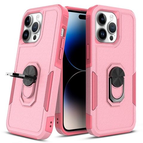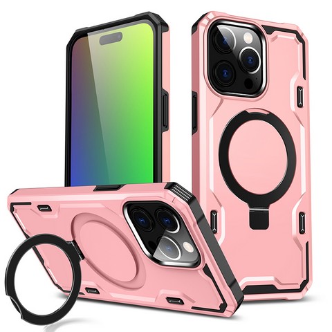 Iphone 15 Pro Max 6.7 Hybrid Dual Layer Case w/Magnetic Ring Stand Pink