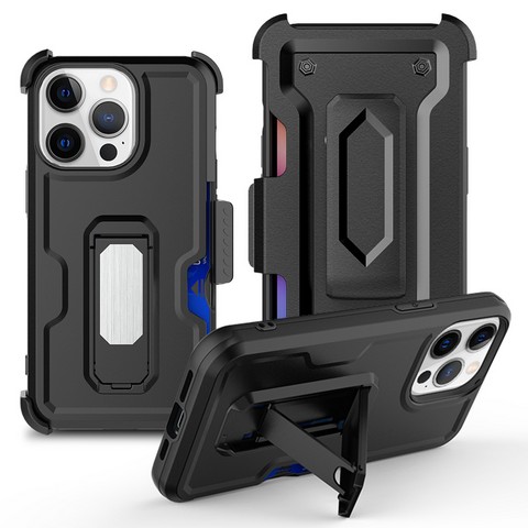 Iphone 15 Pro Max 6.7 Kick Stand Holster Case w/ Card Slot Black