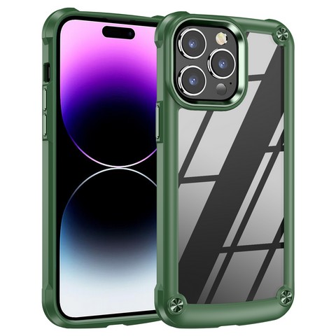 Iphone 15 Pro Max 6.7 Heavy Duty Clear back Shield Case(retail packaged) Green