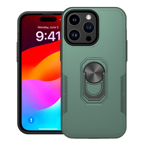 Iphone 15 Pro Max 6.7 Tough Case w/Large Rotating Magnetic Ring Stand Green(Retail Packaged)