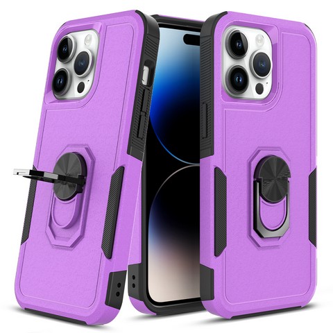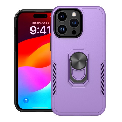 Iphone 15 Pro Max 6.7 Hybrid Dual Layer Case w/Magnetic Ring Stand Purple