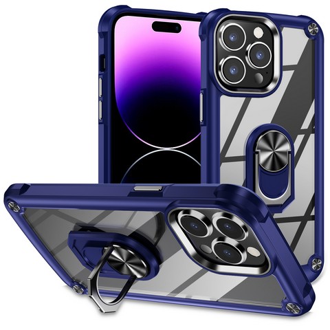 Iphone 15 Pro Max 6.7 Heavy Duty Clear back Shield Case/w Ring Stand(retail packaged) Blue