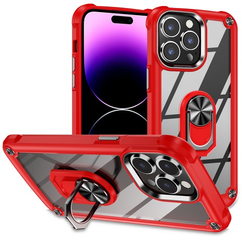 Iphone 15 Pro Max 6.7 Heavy Duty Clear back Shield Case/w Ring Stand(retail packaged) Red