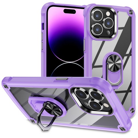 Iphone 15 Pro Max 6.7 Clear Bumper Case w/Magnetic Ring Stand purple