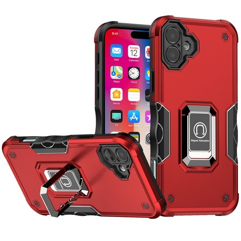 Iphone 16 Plus 6.7 Hybrid Shockproof Magnetic RingStand case Red(Premium Package)