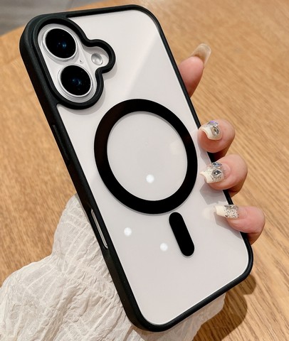 Iphone 16 Plus 6.7 Hybrid Clear Case w/ Magnetic Ring Black Edge(Premium Package)