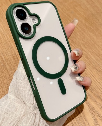 Iphone 16 Plus 6.7 Translucent Case w/ Magnetic Ring Green(Premium Package)