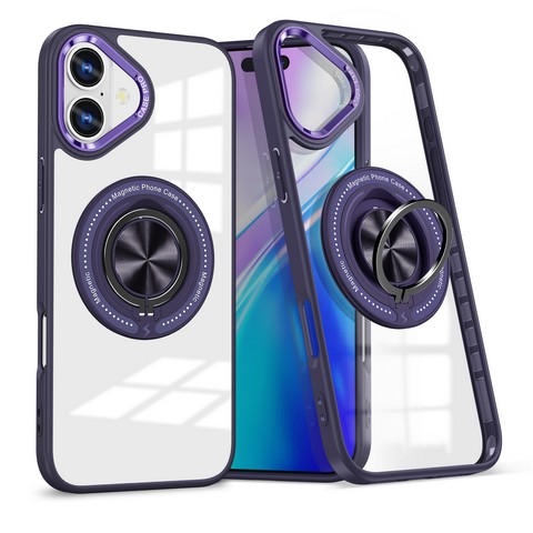 Iphone 16 Plus 6.7 Magnetic Ring case w/ Rotate Ring Stand Purple(Premium Package)