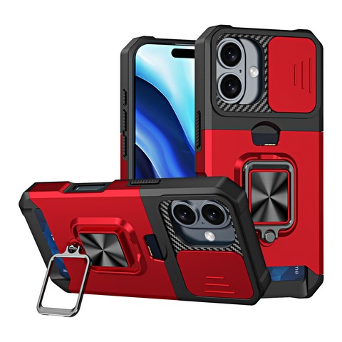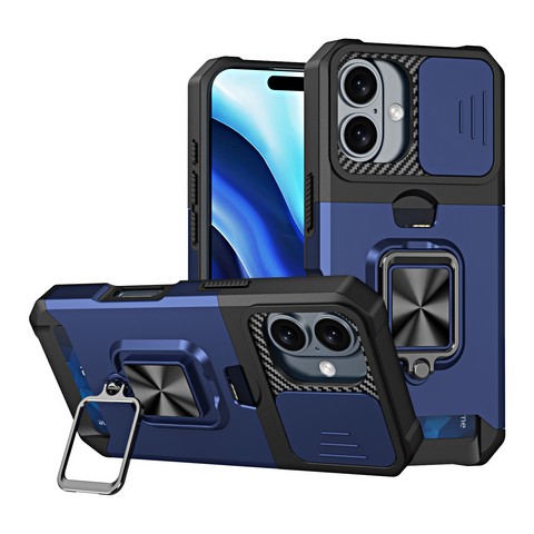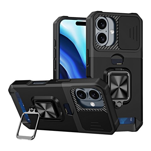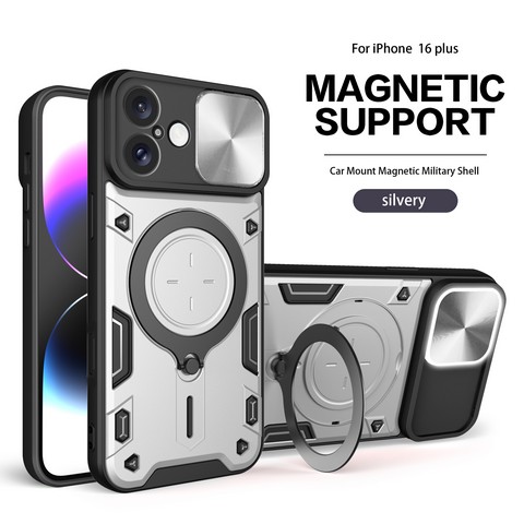 Iphone 16 Plus 6.7 Magnetic Kickstand W/ Sliding Camera Cover Card Slot(Premium Package)