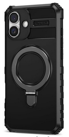 Iphone 16 Plus 6.7 Tough Case w/Large Rotating Magnetic Ring Stand Black(Premium Package)
