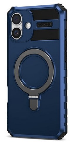 Iphone 16 Plus 6.7 Tough Case w/Large Rotating Magnetic Ring Stand Blue(Premium Package)