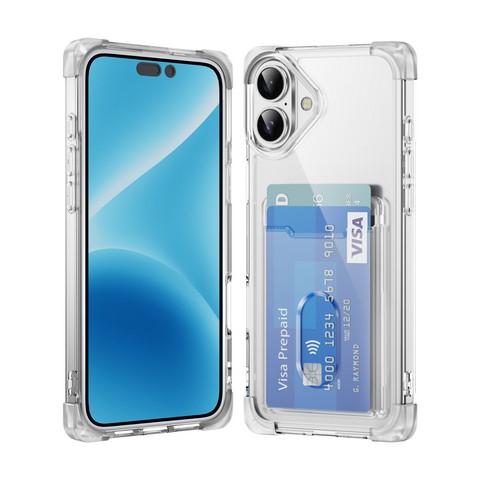 Iphone 16 Plus 6.7 Corner Bumper Case w/Card Slot Clear(Premium Package)