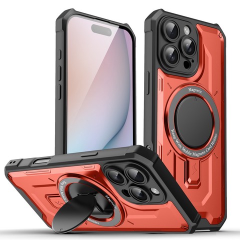 Iphone 16 Plus 6.7 Magnetic case w/Large Rotate Ring Stand Camera Cover Red(Premium Package)