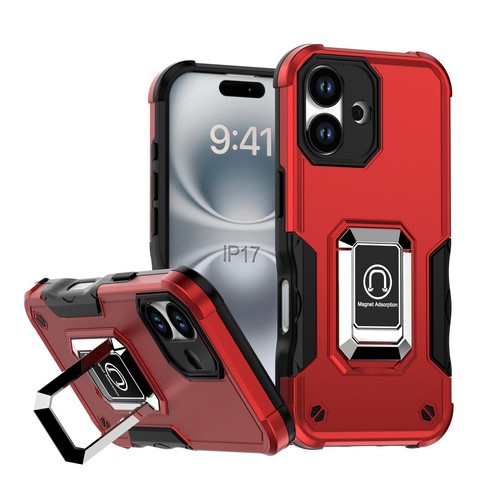 iPhone 17 2025 Hybrid Shockproof Magnetic Ring Stand case Red(Premium Package)