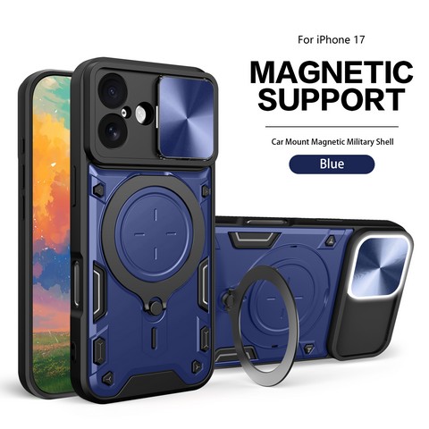 iPhone 17 2025 Large Rotate Magnetic Ring Stand case Blue(Premium Package)