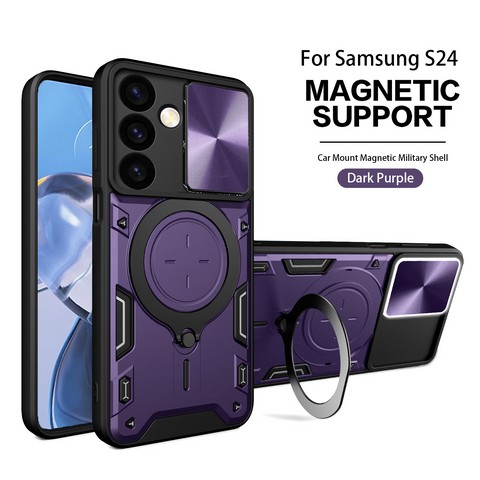 Samsung Galaxy S24 Twisting Magnetic Ring Stand Case w/Camera cover Purple(Retail Packaged)