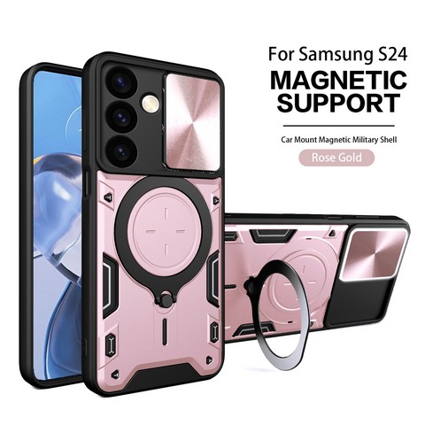 Samsung Galaxy S24 Heavy Duty Magnet Ring Stand w/ Sliding Camera Cover