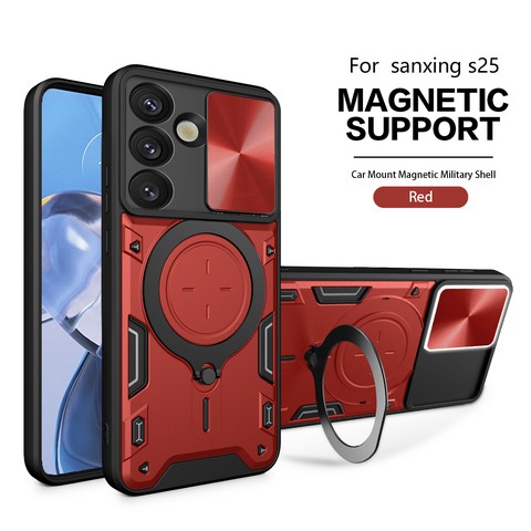 Samsung Galaxy S25 Twisting Magnetic Ring Stand Case w/Camera cover Red(Premium Package)
