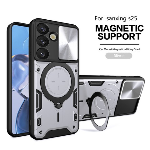 Samsung Galaxy S25 Twisting Magnetic Ring Stand Case w/Camera cover Silver(Premium Package)