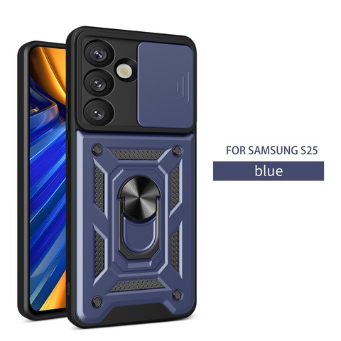 Samsung Galaxy S25 Twisting Magnetic Ring Stand Case w/Camera cover Blue(Premium Package)