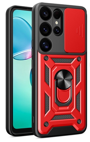 Samsung Galaxy S26 Ultra Rotate Magnetic Ring Stand case w/Camera Cover Red(Premium Package)