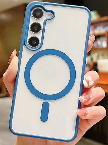 Samsung S25 Edge Hybrid Clear Case w/ Magnetic Ring Blue Edge(Premium Package)