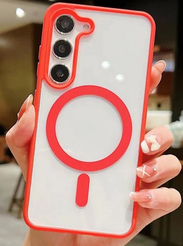 Samsung S25 Edge Hybrid Clear Case w/ Magnetic Ring Red Edge(Premium Package)
